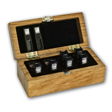 Комплект имеет в своем составе 8 светофильтров, в том числе 6 с различными коэффициентами спектрального пропускания (2, 8, 13, 32, 66 и 92% Т на длине волны 500 нм), аттестованные по оптической плотности на длинах волн 250, 340, 405, 520, 540, 570, 620, 670, 850 и 960 нм, а также по пропусканию на длинах волн 472 и 600 нм. Один светофильтр предназначен для проверки правильности установки по длинам волн и аттестован по нескольким максимумам полос поглощения в диапазоне от 350 до 880 нм при выделяемом спектральном интервале 1 и 5 нм. Восьмой светофильтр используется для проверки уровня мешающего излучения
