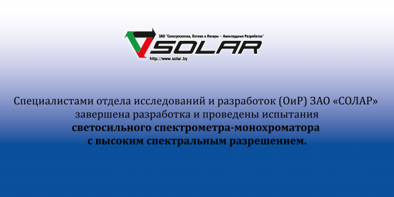 Специалистами отдела исследований и разработок (ОИР) ЗАО «СОЛАР» завершена разработка и проведены испытания светосильного спектрометра-полихроматора с высоким спектральным разрешением. Данный...