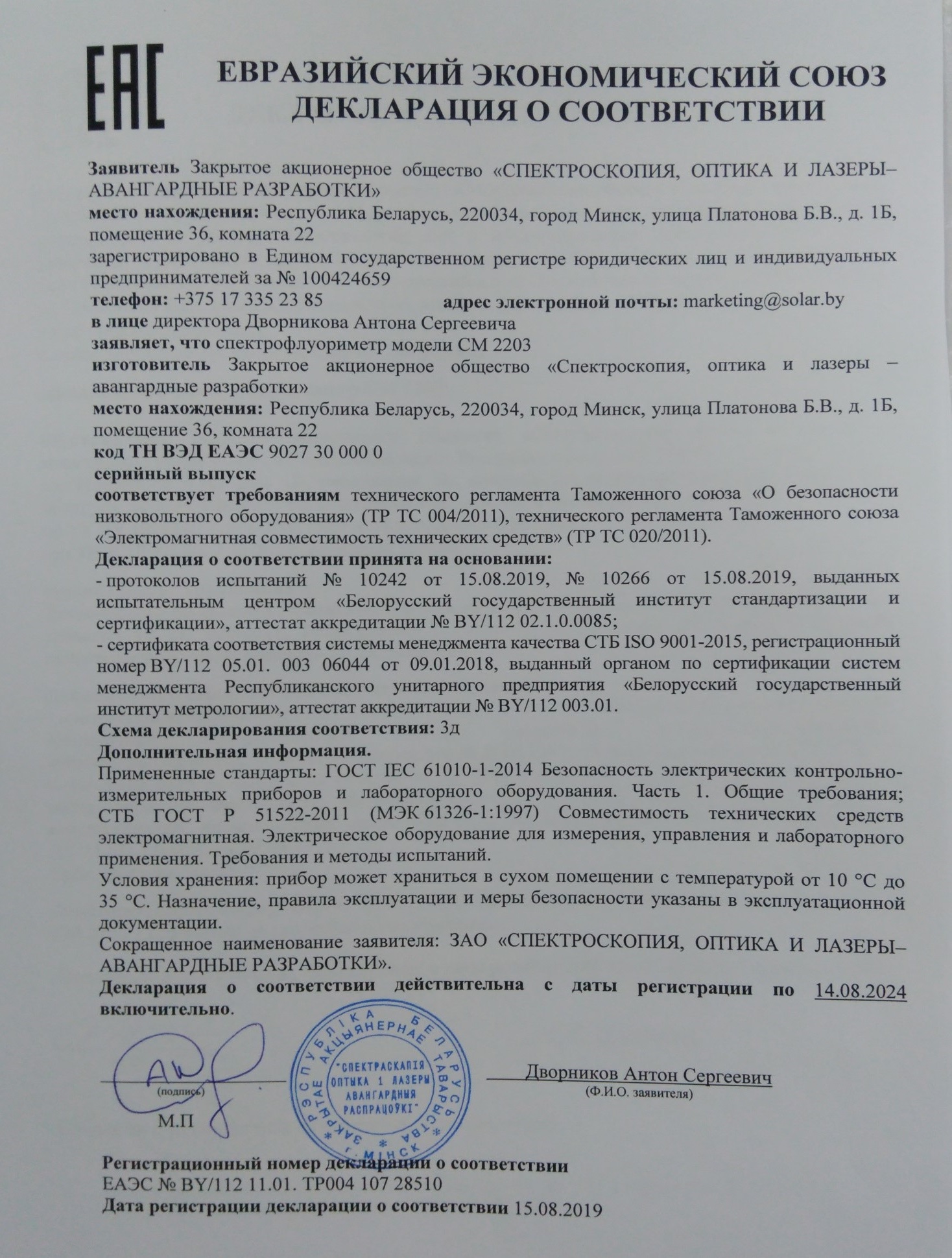 Спектрофлуориметр «СОЛАР» обеспечивает высокочувствительные и стабильные измерения в ультрафиолетовой и видимой областях спектра. Прибор применяется для проведения различных исследований в научных лабораториях, промышленных лабораториях, учреждениях здравоохранения, ветеринарии, фармацевтики, экологии, криминалистики и т.п.