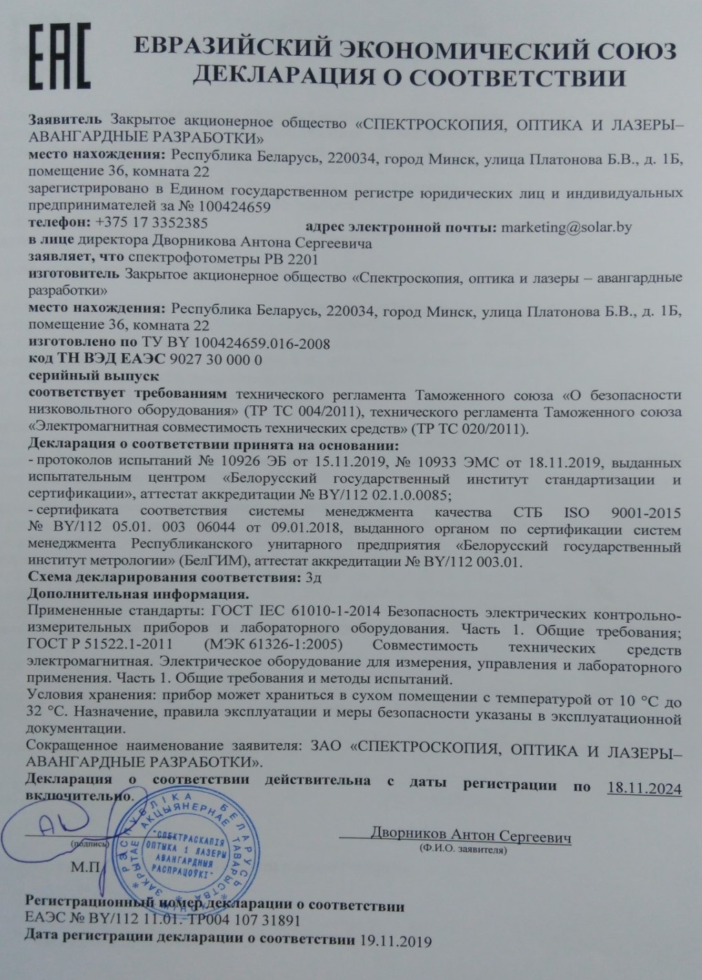 Спектрофотометр РВ2201 А, В или С (по дополнительному заказу - любая модель кюветного держателя (А, В или С) в дополнение к основному)